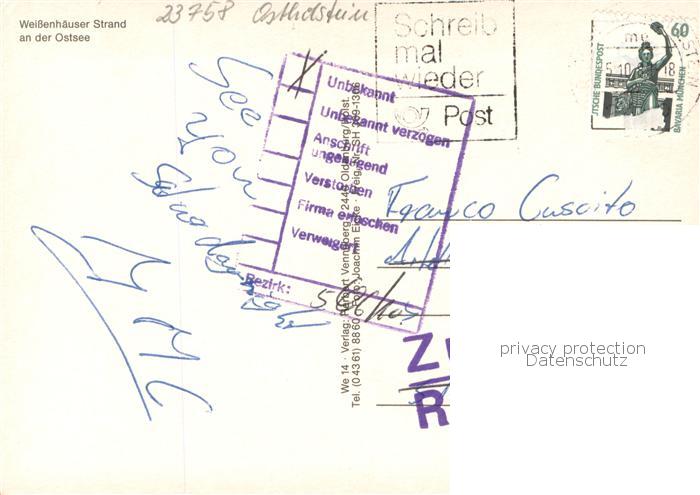 73767116 alte Postkarte Weissenhaeuser Strand Fliegeraufnahme postalisch gelaufen Erhaltung siehe scans [FriedD77] KatCode: 11110001055043