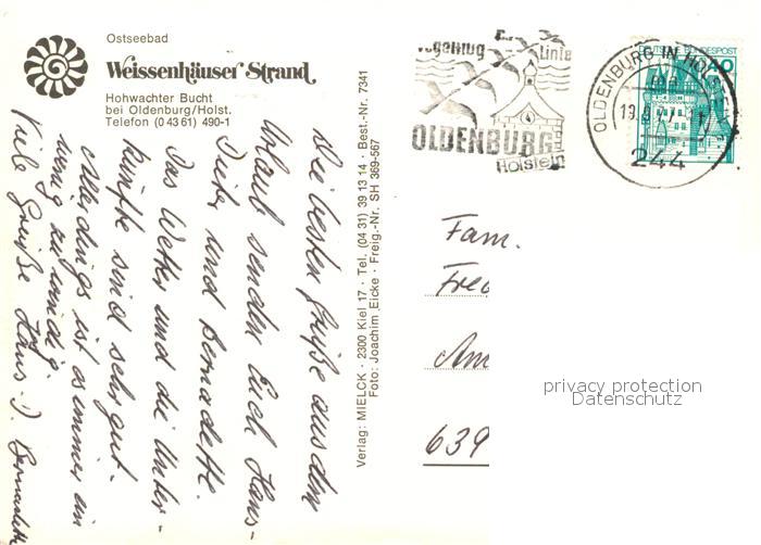 73541080 alte Postkarte Weissenhaeuser Strand Fliegeraufnahme Hohwachter Bucht postalisch gelaufen Erhaltung siehe scans [WerneD78] KatCode: 11110001055043