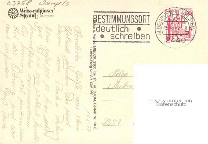 73668541 alte Postkarte Weissenhaeuser Strand Fliegeraufnahme Hotel Panorama postalisch gelaufen Erhaltung siehe scans [WerneD78] KatCode: 11110001055043