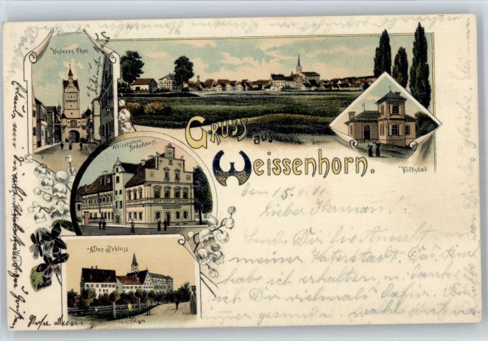 30908902 Weissenhorn Neu-Ulm Bayern Braeuhaus Schloss Volksbad postalisch gelaufen Alte Ansichtskarte Postkarte alte Postkarte Katcode 11110009775164