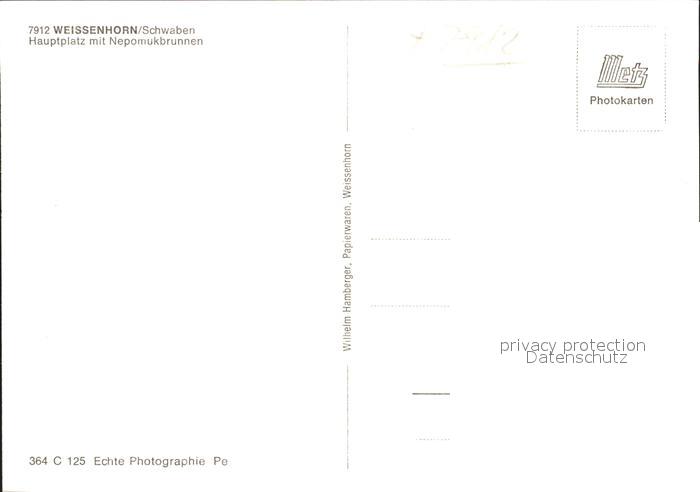 41815689 Weissenhorn Neu-Ulm Bayern Hauptplatz mit Nepomukbrunnen postalisch nicht gelaufen Erhaltung siehe scans Alte Ansichtskarte Postkarte hz_F Katcode 11110009775164