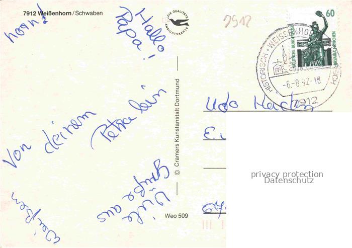 74050075 Weissenhorn Neu-Ulm Bayern Oberes Tor Nepomuk Brunnen Rathaus Hauptstrasse Unteres Tor postalisch gelaufen Erhaltung siehe scans [WerneD78] alte Postkarte Wern Katcode 11110009775164