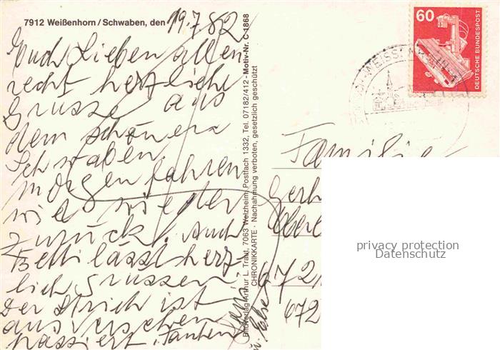 74050089 Weissenhorn Neu-Ulm Bayern Oberes Tor Schloss Unteres Tor postalisch gelaufen Erhaltung siehe scans [WerneD78] alte Postkarte Wern Katcode 11110009775164