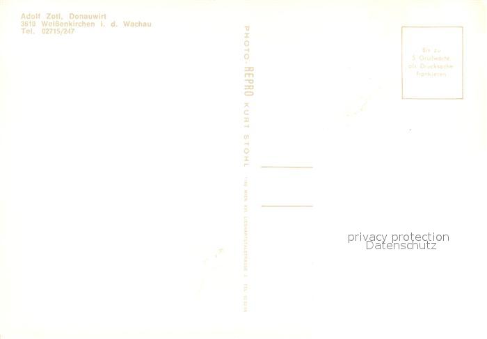 73531732 Weissenkirchen Wachau Gasthof Donauwirt Terrasse Motiv mit Kirche postalisch nicht gelaufen Erhaltung siehe scans [FriedD77] KatCode: 11390124031351