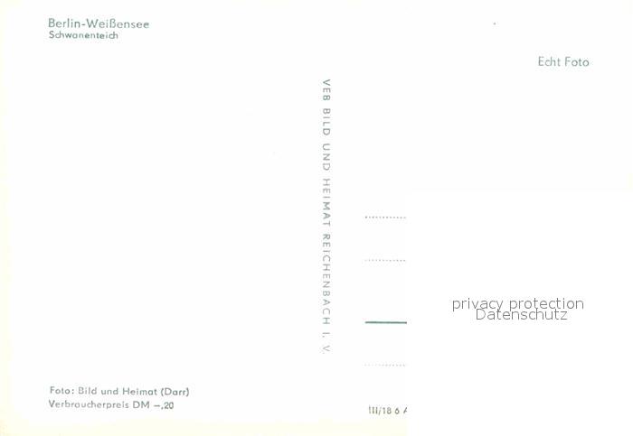 72729594 Weissensee Berlin Schwanenteich postalisch nicht gelaufen Erhaltung siehe scans [FriedD77] KatCode: 11110011000000