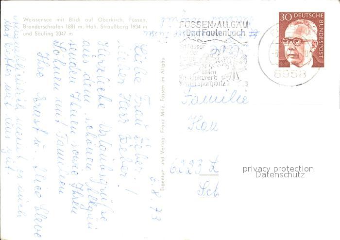 72552676 alte Postkarte Weissensee Fuessen mit Oberkirch Branderschrofen Hoher Straussberg Saeuling postalisch gelaufen Erhaltung siehe scans [WerneD78] KatCode: 11110009777129