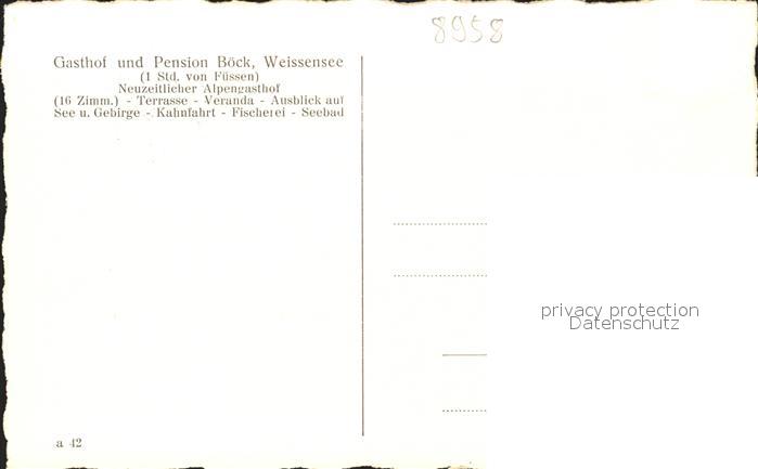 31850047 Weissensee Fuessen Restaurant Boeck mit Falkensteinen und Salober Weissensee Schlicke postalisch nicht gelaufen Erhaltung siehe scans KatCode: 11110009777129