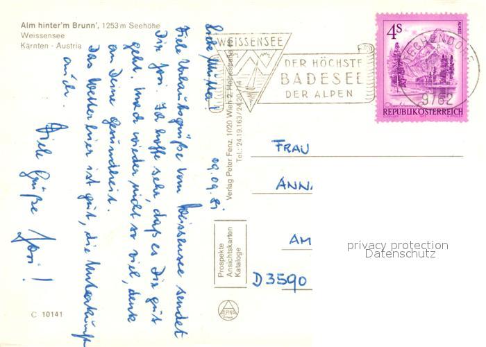 73234939 alte Postkarte Weissensee Kaernten Alm hinter’m Brunn Kuehe postalisch gelaufen Erhaltung siehe scans [FriedD77] KatCode: 11390212020639