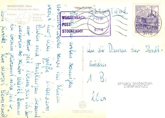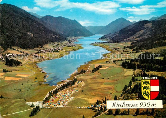 73522189 alte Postkarte Weissensee Kaernten Alpenbadesee Fliegeraufnahme postalisch gelaufen Erhaltung siehe scans [WerneD78] KatCode: 11390212020639
