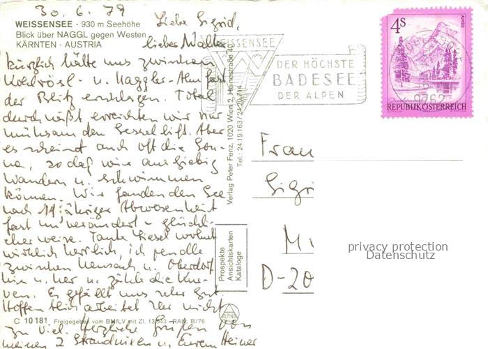 74153160 alte Postkarte Weissensee Kaernten AT Blick ueber Naggl Fliegeraufnahme postalisch gelaufen Erhaltung siehe scans [WerneD78] KatCode: 11390212020639