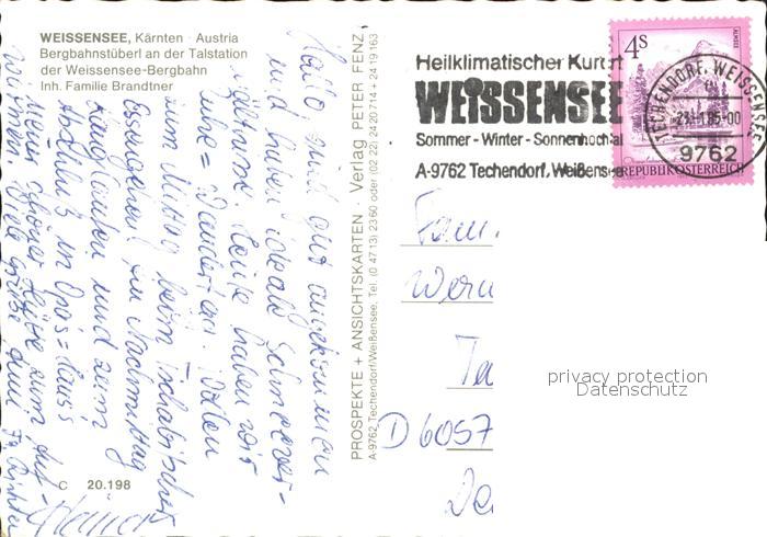 11923286 alte Postkarte Weissensee Kaernten Bergbahn Stueberl Details postalisch gelaufen Erhaltung siehe scans KatCode: 11390212020639