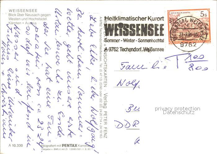 72330582 alte Postkarte Weissensee Kaernten Blick ueber Neusach gegen Westen und Hochstadel Alpen Fliegeraufnahme postalisch gelaufen Erhaltung siehe scans KatCode: 11390212020639