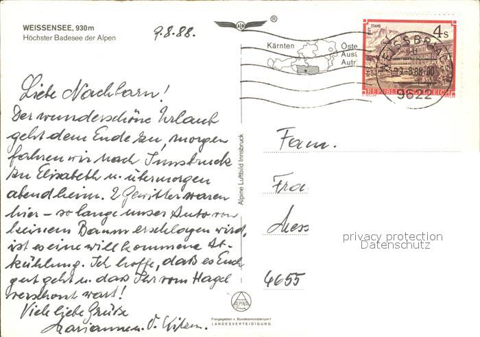 72420126 alte Postkarte Weissensee Kaernten Fliegeraufnahme postalisch gelaufen Erhaltung siehe scans KatCode: 11390212020639
