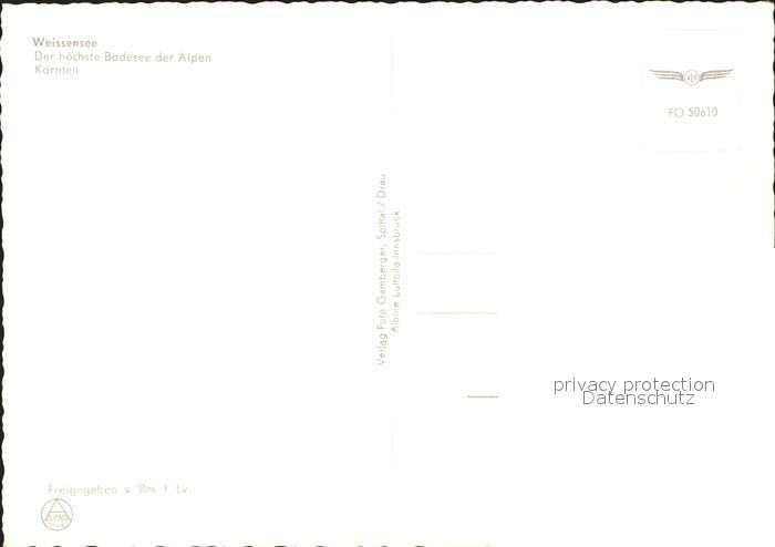 71962123 Weissensee Kaernten Fliegeraufnahme postalisch nicht gelaufen Erhaltung siehe scans KatCode: 11390212020639
