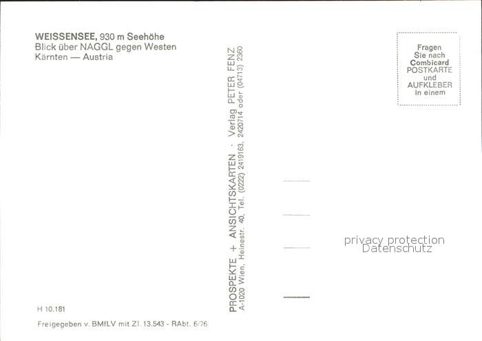72284949 Weissensee Kaernten Fliegeraufnahme Naggl postalisch nicht gelaufen Erhaltung siehe scans KatCode: 11390212020639