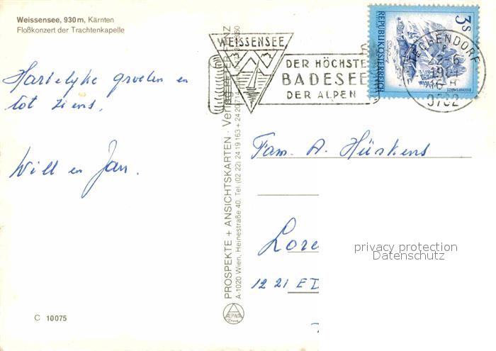 72906861 alte Postkarte Weissensee Kaernten Flosskonzert der Trachtenkapelle postalisch gelaufen Erhaltung siehe scans [LiesaD40] KatCode: 11390212020639