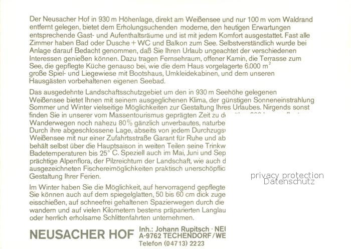 73340209 Weissensee Kaernten Neusacher-Hof Pferdeschlitten Schlittschulaufen Eiskegeln postalisch nicht gelaufen Werbekarte (keine Postkarte) Erhaltung siehe scans [LiesaD40] KatCode: 11390212020639