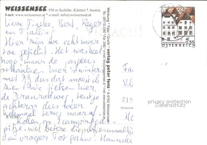 72463005 alte Postkarte Weissensee Kaernten Seehoehe postalisch gelaufen Erhaltung siehe scans KatCode: 11390212020639