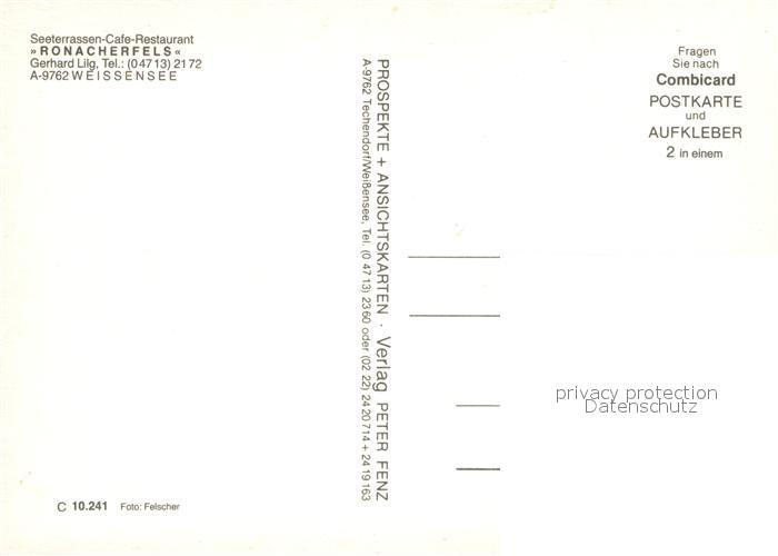 73028930 Weissensee Kaernten Seeterrassen-Cafe Ronacherfels postalisch nicht gelaufen Erhaltung siehe scans [PaolaD17] KatCode: 11390212020639