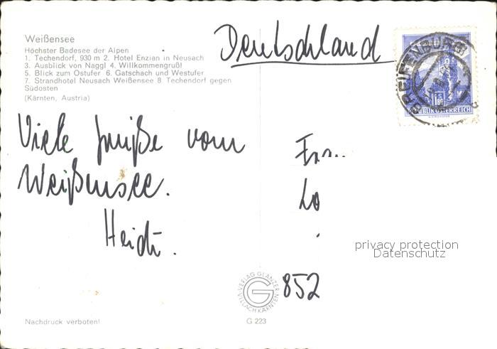 72436428 alte Postkarte Weissensee Kaernten Techendorf Ausblick von Naggl Ostufer Westufer postalisch gelaufen Erhaltung siehe scans KatCode: 11390212020639