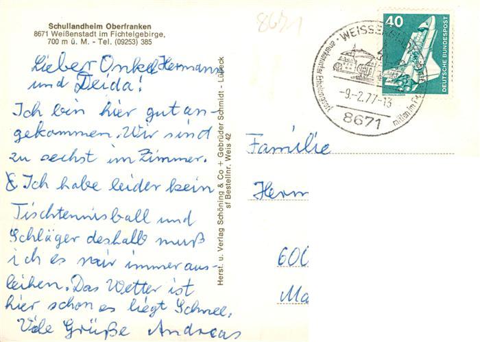 73936404 alte Postkarte Weissenstadt Bayern Schullandheim Oberfranken postalisch gelaufen Erhaltung siehe scans [WerneD78] KatCode: 11110009479166