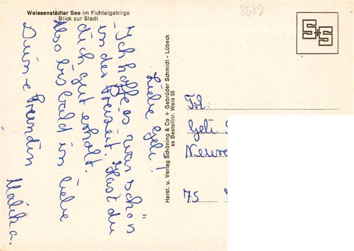 73941273 Weissenstadt Bayern Weissenstaedter See Badesteg Blick zur Stadt postalisch nicht gelaufen Erhaltung siehe scans [FriedD77] KatCode: 11110009479166