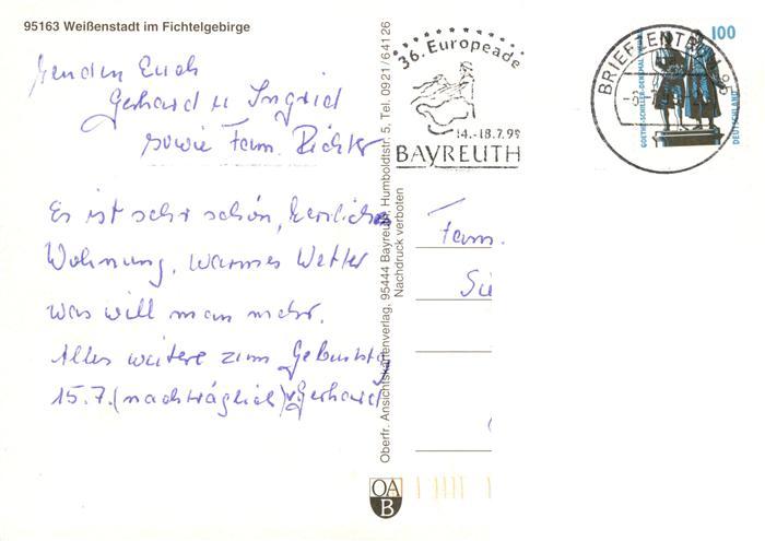 73945114 alte Postkarte Weissenstadt Bayern Weissenstaedter See Erholungszentrum im Fichtelgebirge postalisch gelaufen Erhaltung siehe scans [FriedD77] KatCode: 11110009479166