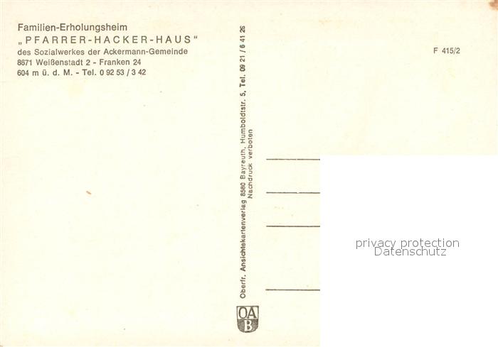 73646383 Weissenstadt Familien Erholungsheim Pfarrer Hacker Haus postalisch nicht gelaufen Erhaltung siehe scans [WerneD78] KatCode: 11110009479166