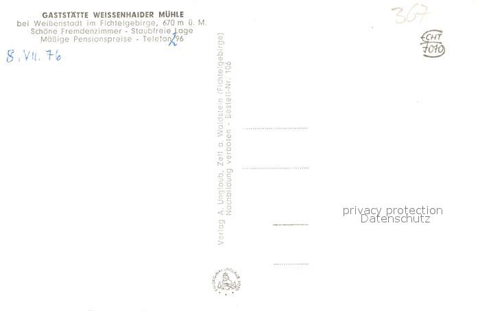 73596953 Weissenstadt Gaststaette Weissenhaider Muehle postalisch nicht gelaufen Erhaltung siehe scans [KathaD81] KatCode: 11110009479166