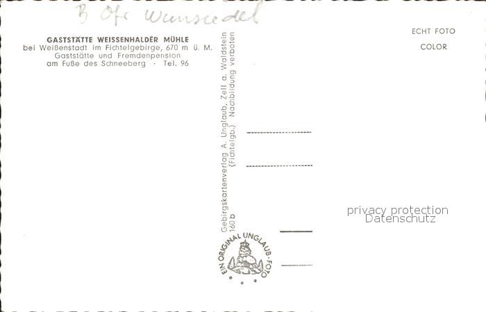 72466566 Weissenstadt Gaststaette Weissenhalder Muehle im Fichtelgebirge postalisch nicht gelaufen Erhaltung siehe scans KatCode: 11110009479166