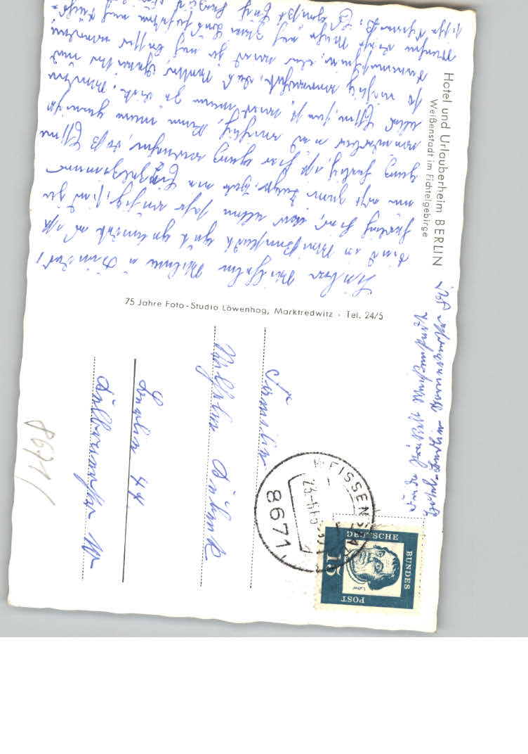 31169911 Weissenstadt Hotel Berlin postalisch nicht gelaufen KatCode: 11110009479166