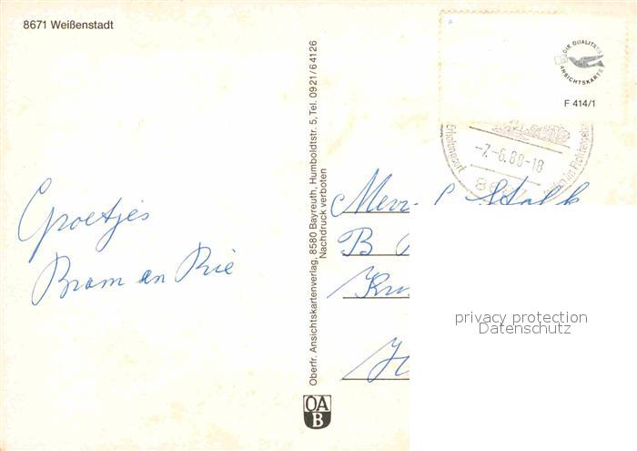 72771446 alte Postkarte Weissenstadt Kirche Panorama Brunnen postalisch gelaufen Erhaltung siehe scans [WerneD78] KatCode: 11110009479166