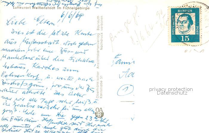 43352323 alte Postkarte Weissenstadt Ortsansicht postalisch gelaufen Erhaltung siehe scans [WerneD78] KatCode: 11110009479166