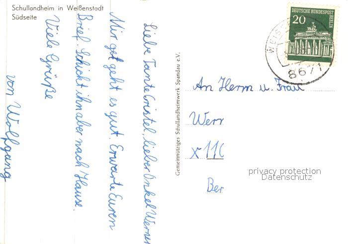 73090466 alte Postkarte Weissenstadt Schullandheim postalisch gelaufen Erhaltung siehe scans [NatalD47] KatCode: 11110009479166