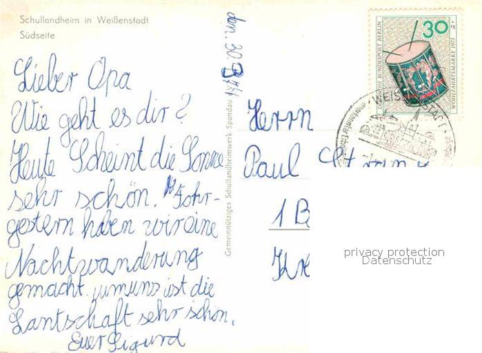 72673797 alte Postkarte Weissenstadt Schullandheim postalisch gelaufen Erhaltung siehe scans [AndreD76] KatCode: 11110009479166