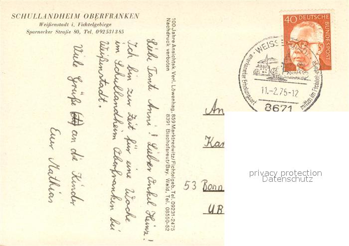 73652976 alte Postkarte Weissenstadt Schullandheim Oberfranken postalisch gelaufen Erhaltung siehe scans [WerneD78] KatCode: 11110009479166