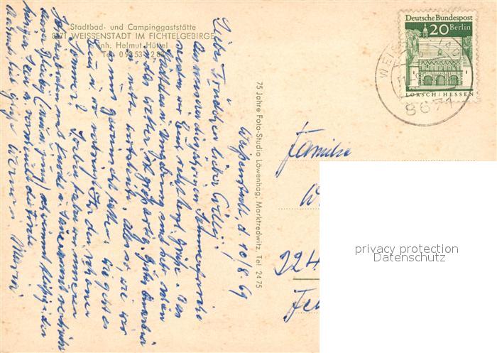 73087772 alte Postkarte Weissenstadt Stadtbad Campingplatz postalisch gelaufen Erhaltung siehe scans [KathaD81] KatCode: 11110009479166