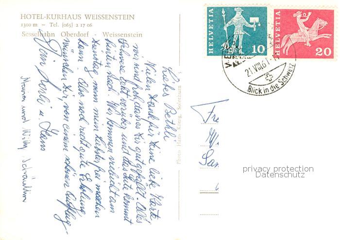 13864908 alte Postkarte Weissenstein 1300m SO Hotel Kurhaus Weissenstein postalisch gelaufen Erhaltung siehe scans [WerneD78] KatCode: 11470180525420