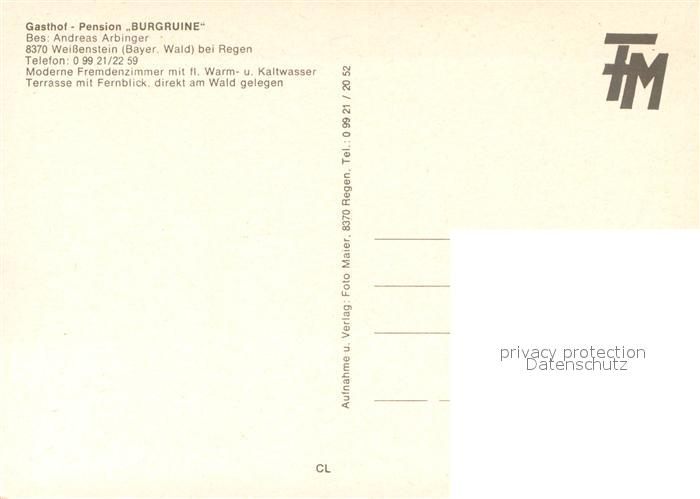 73662527 Weissenstein Regen Gasthof Pension Burgruine Restaurant Terrasse Landschaftspanorama postalisch nicht gelaufen Erhaltung siehe scans [FriedD77] KatCode: 11110009276138