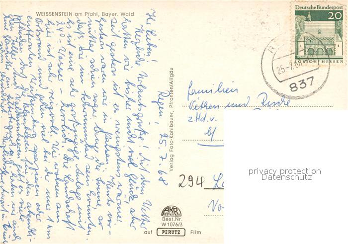 73672041 alte Postkarte Weissenstein Regen Ortsansicht mit Burg Weissenstein am Pfahl Bayerischer Wald postalisch gelaufen Erhaltung siehe scans [FriedD77] KatCode: 11110009276138