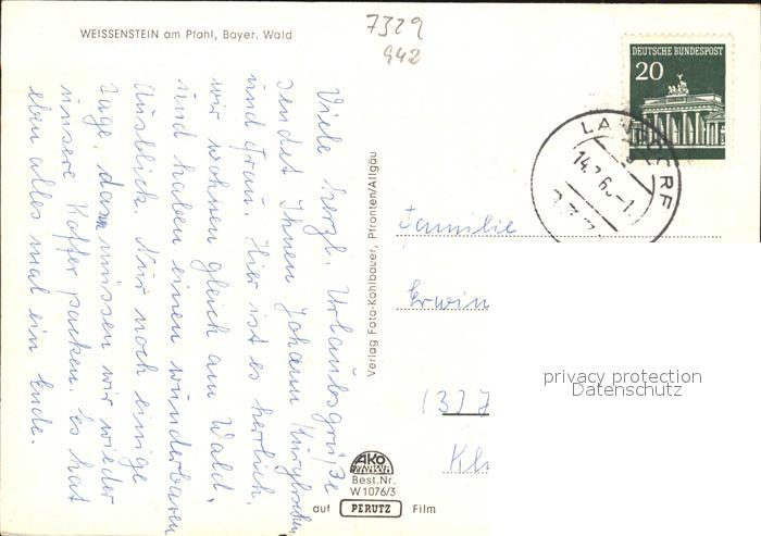 72605511 alte Postkarte Weissenstein Regen Ortsansicht mit Burgruine postalisch gelaufen Erhaltung siehe scans [FriedD77] KatCode: 11110009276138