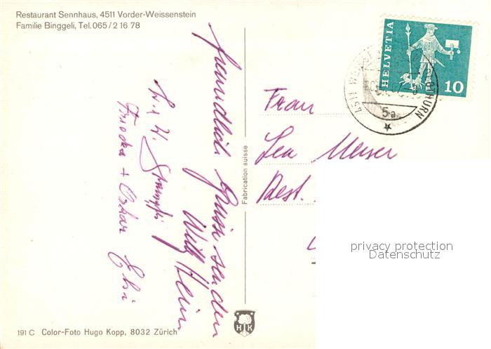 13252823 alte Postkarte Weissenstein SO Vorder-Weissenstein Restaurant Sennhaus postalisch gelaufen Erhaltung siehe scans [NatalD47] KatCode: 11470180525420