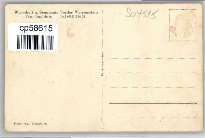 70722591 Weissenstein SO Weissenstein Wirtschaft Sennhaus postalisch nicht gelaufen KatCode: 11470180525420
