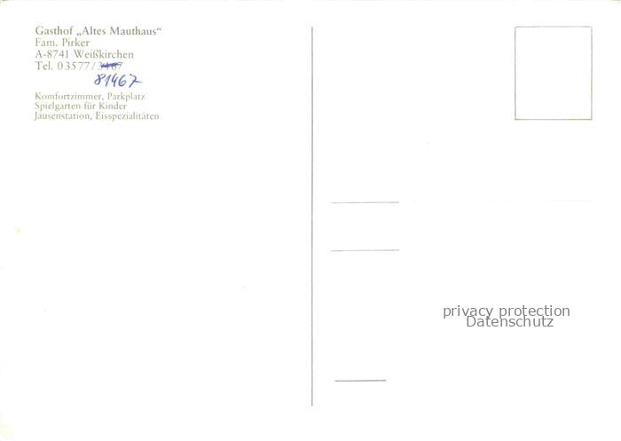 74086300 Weisskirchen Steiermark AT Gasthof Altes Mauthaus Gastraeume Kirche Schwimmbad postalisch nicht gelaufen Erhaltung siehe scans [WerneD78] KatCode: 11390226060823