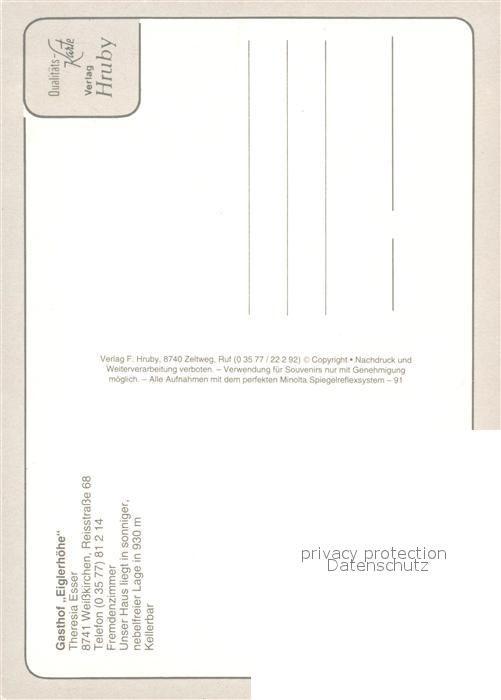 73328433 Weisskirchen Steiermark Gasthof Eiglerhoehe postalisch nicht gelaufen Erhaltung siehe scans [KathaD81] KatCode: 11390226060823
