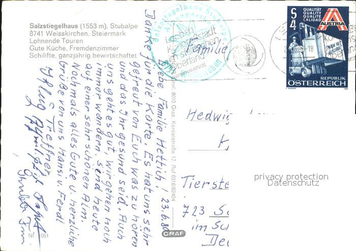 72494549 alte Postkarte Weisskirchen Steiermark Salzstiegelhaus Stubalpe postalisch gelaufen Erhaltung siehe scans KatCode: 11390226060823