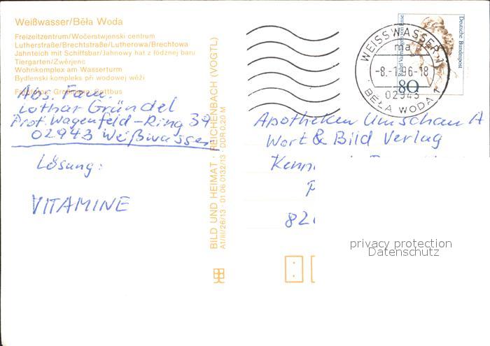 72391346 alte Postkarte Weisswasser Oberlausitz Freizeitzentrum Lutherstrasse Tiergarten postalisch gelaufen Erhaltung siehe scans KatCode: 11110014284470