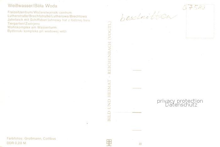 73129312 Weisswasser Oberlausitz Lutherstrasse Freizeizentrum Jahnteich Wasserturm Pferde postalisch nicht gelaufen Erhaltung siehe scans [LiesaD40] KatCode: 11110014284470