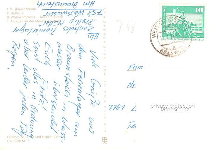 73873842 alte Postkarte Weisswasser Oberlausitz Muskauer Strasse Rathaus Wohnkomplex I Humboldtstrasse Anlagen postalisch gelaufen Erhaltung siehe scans [WerneD78] KatCode: 11110014284470