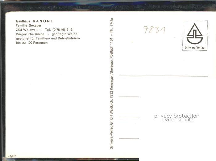 71832995 Weisweil Gasthaus Kanone postalisch nicht gelaufen Erhaltung siehe scans KatCode: 11110008316049